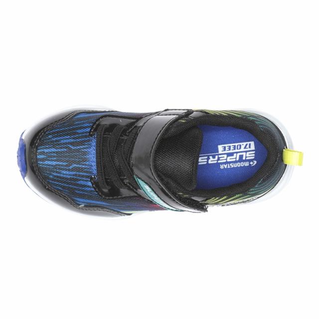 子どもたちの「速く走りたい」という想いから生まれた「スーパースター」の幅広3Eキッズシューズです。「速く走る」を体現するために搭載されたパワーバネが走りをアシストします。脱ぎ履きしやすいゴム紐×バンドタイプです。スピード感とサイバー感にあふれる鮮やかなグラフィックデザインが特徴の商品です。重さは17.0cmで片足約125gです。【パワーバネ】ムーンスター独自開発の特殊なゴムを靴底に搭載し、地面を踏みこむときにパワーを蓄積し、蹴り出すと同時に一気にパワーを推進力に。【Ag+抗菌防臭】銀イオンの抗菌作用でにおいのもととなる菌の増殖を抑制し、防臭効果を発揮します。【洗えるインソール】インソールは取り出して洗えるのでいつも清潔に保てます。【耐摩耗ラバー】靴底にはすり減りが少なく、高い耐久性を発揮するラバーを採用しています。