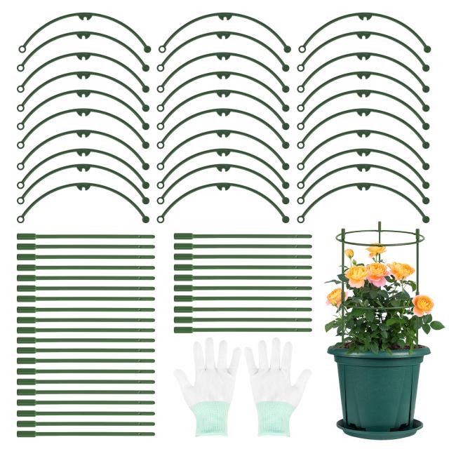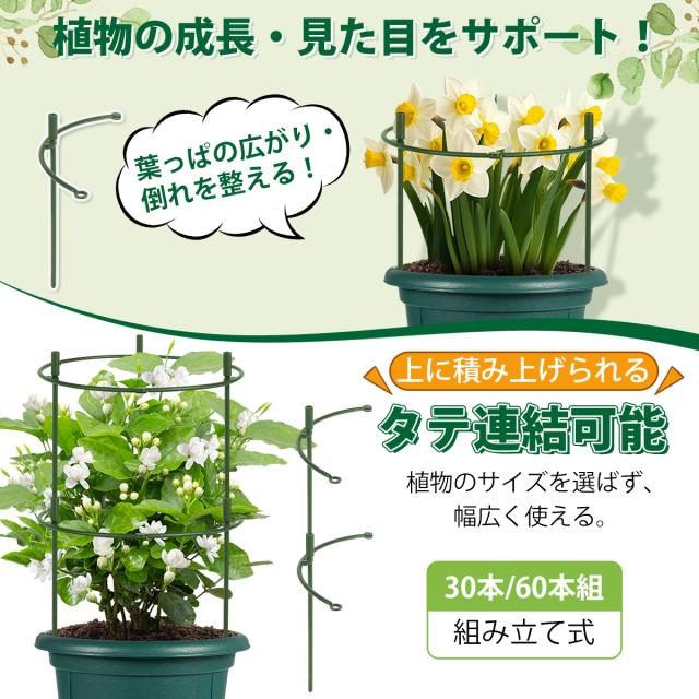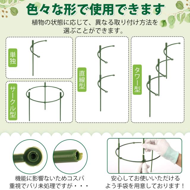 支柱 園芸 組立式 手袋付 連結式 植物支柱 園芸用 30組本組 60組本組 調整可能 観葉植物 園芸 ガーデニング 植物固定 支柱セット(グリーン)