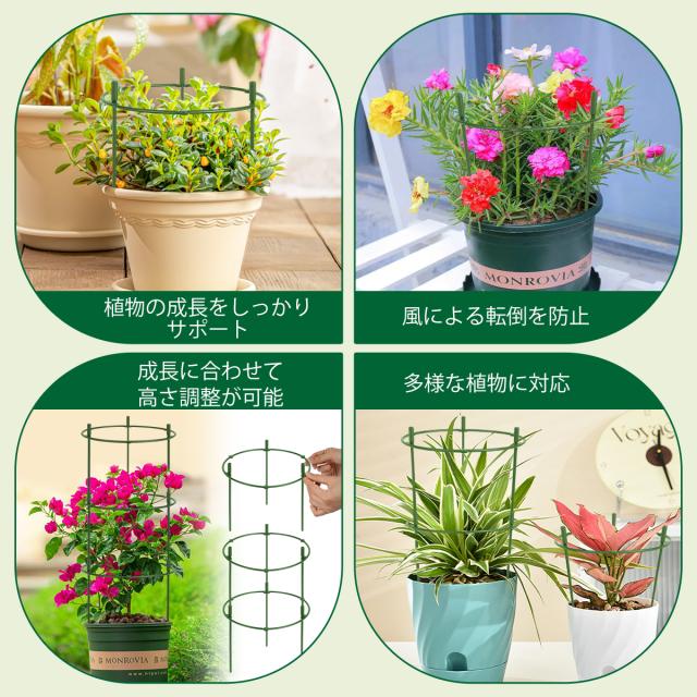 トマト・バラ・アジサイ・観葉植物など、多種多様な植物に対応。ガーデニング初心者から園芸愛好者まで、家庭菜園に最適な支柱セットです。
