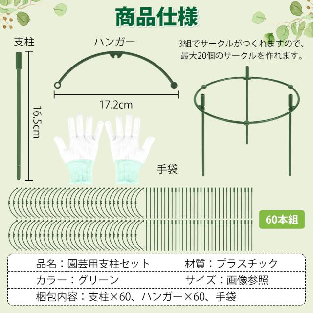 梱包内容:支柱×30/60、ハンガー×30/60、手袋