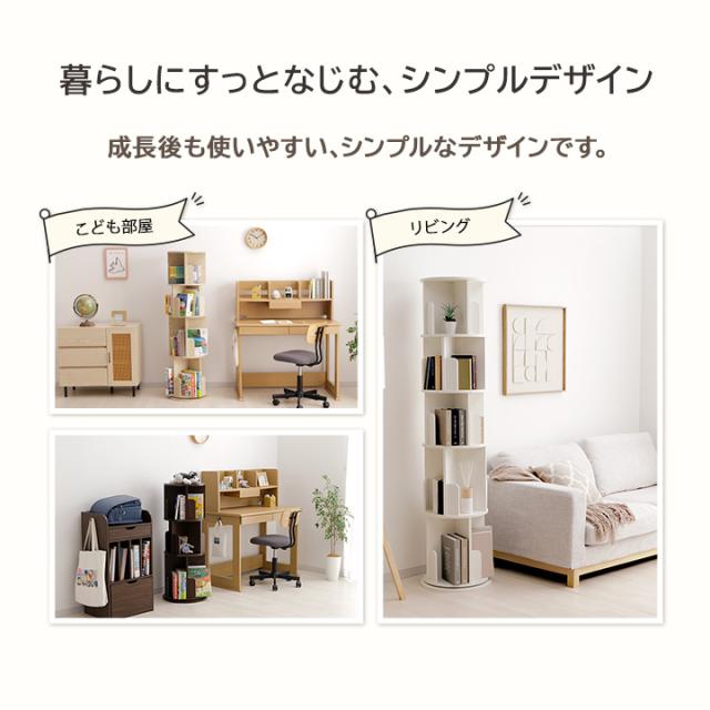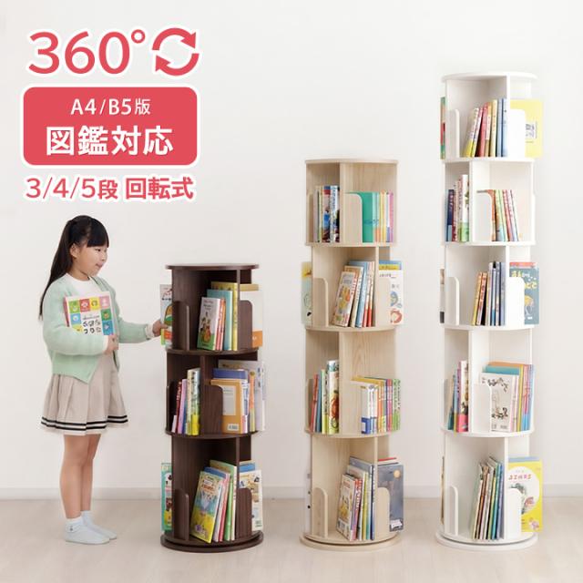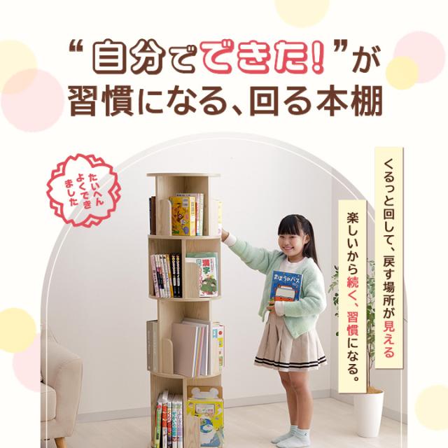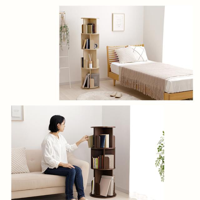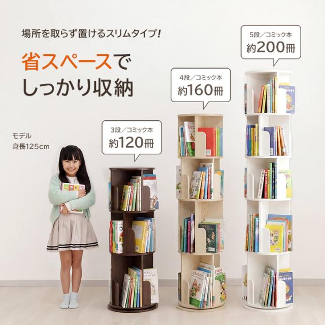 本棚 スリム 回転 おしゃれ 「 ラング 5段 」 回転式本棚 木製 収納棚 マガジンラック コミックラック 子ども部屋 漫画 絵本 本 新生活 一人暮らし 誕生日 プレゼント