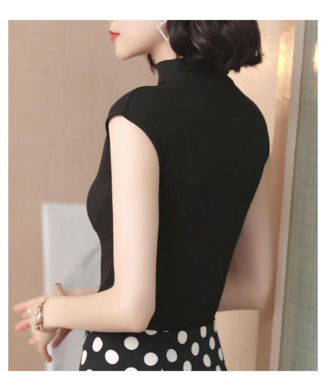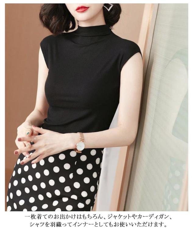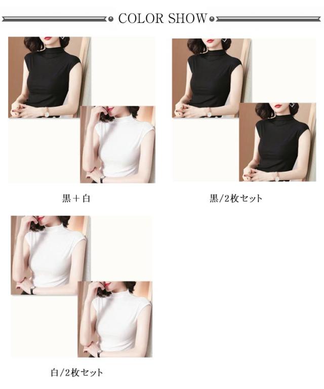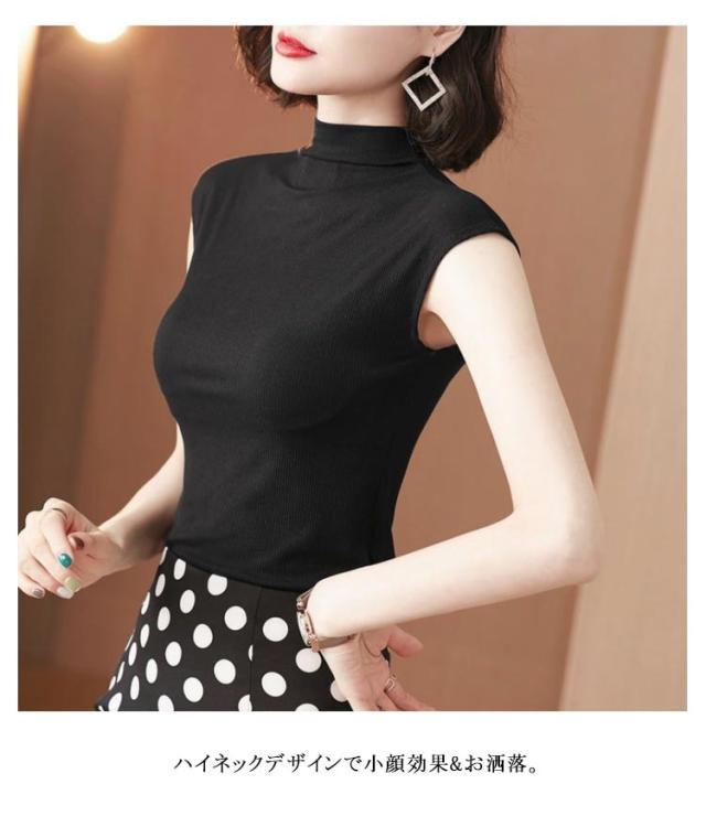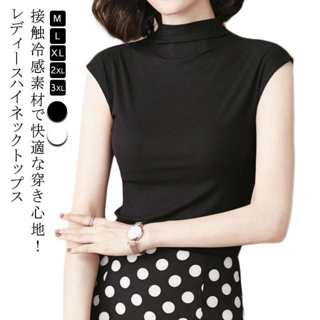 カットソー ノースリーブ レディース 接触冷感 ハイネック アンダー ハイネックtシャツ ノースリーブtシャツ インナー 肌着 大人 女性 きれいめ セクシー 大きいサイズ 薄手 春夏 秋 重ね着 レイヤード シャツ 黒 送料無料