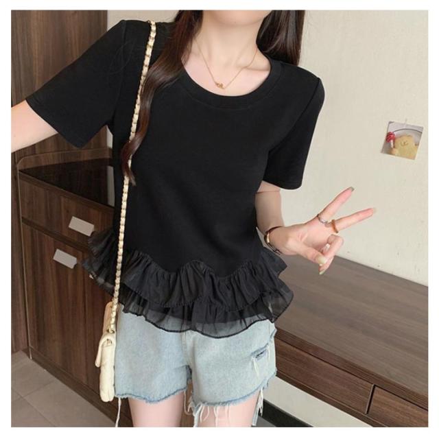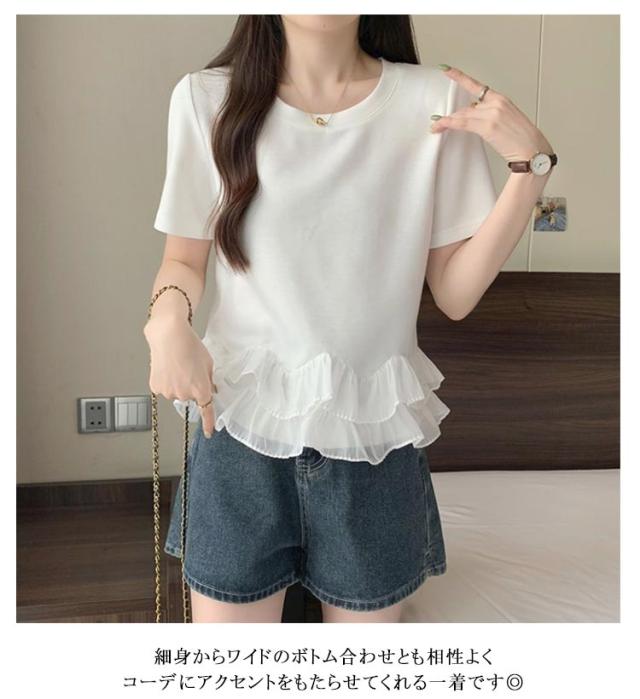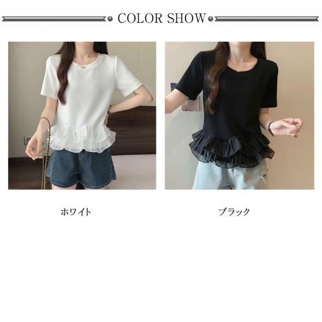 Tシャツ ペプラムドッキングトップス レディース トップス クルーネック 大きいサイズ 20代 30代 40代 フリル ペプラムトップス トップス 半袖 春 夏服 着痩せ カジュアル ゆったり キレイめ 大人可愛い ブラック ホワイト 体型カバー 送料無料