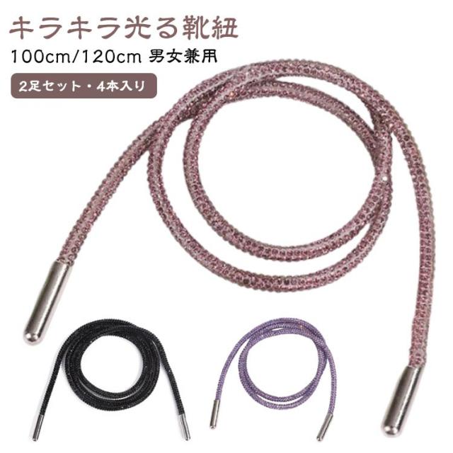 靴ひも 2足セット(4本入り) キラキラ 靴紐 多目的キラキラ光る靴紐 スニーカー用 ラインストーン グリッター ストリング 交換靴紐 キャンバス アスレチックウェア アクセサリー きらきら