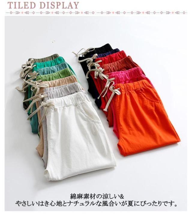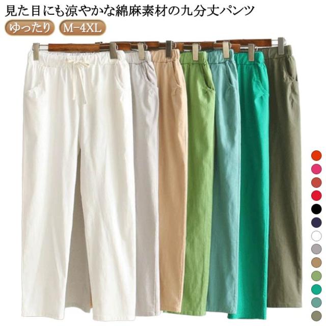 リネンパンツ レディース 九分丈 テーパードパンツ 綿麻パンツ リネン混 麻混 パンツ ストレートパンツ ロングパンツ 無地 コットンリネン ボトムス リラックスパンツ 涼しい ウエストゴム 大きいサイズ ゆったり 体型カバー おしゃれ カジュアル 可愛い シンプル 送料無料