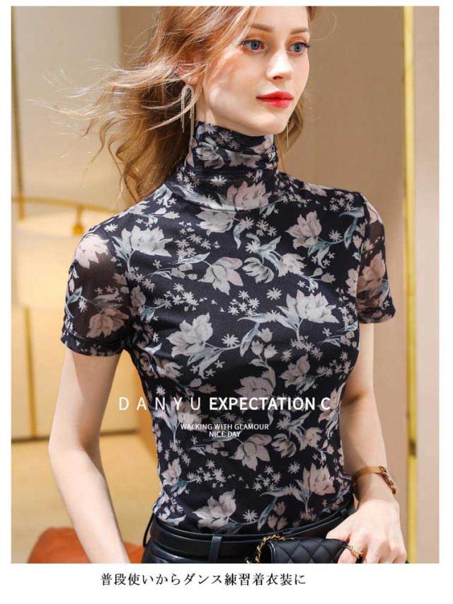 ハイネック 半袖 タートルネック レディース 半袖トップス Tシャツ メッシュ素材 インナー タートルネック 花柄 半袖シャツ トップス tシャツ ゆったり 大きいサイズ 無地 おしゃれ 春夏 春 夏 ハイネック 送料無料