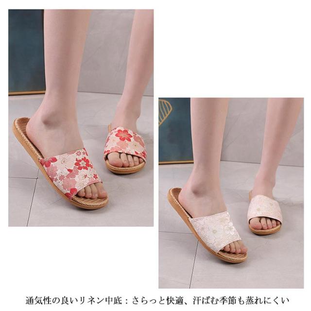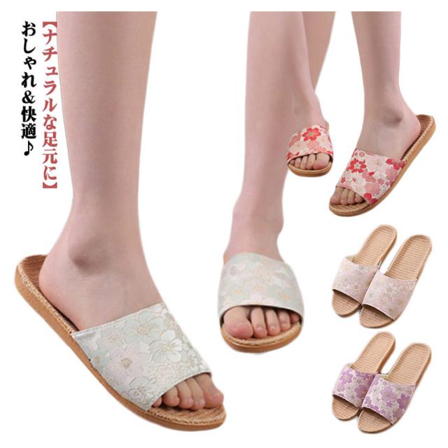スリッパ 麻素材 夏用 ルームシューズ ベランダ サンダル レディース 花柄 布製 麻 リネン 前あき スリッパ 春夏スリッパ おしゃれ 蒸れない 滑り止め オフィス 自宅用 来客用 新生活 プレゼント