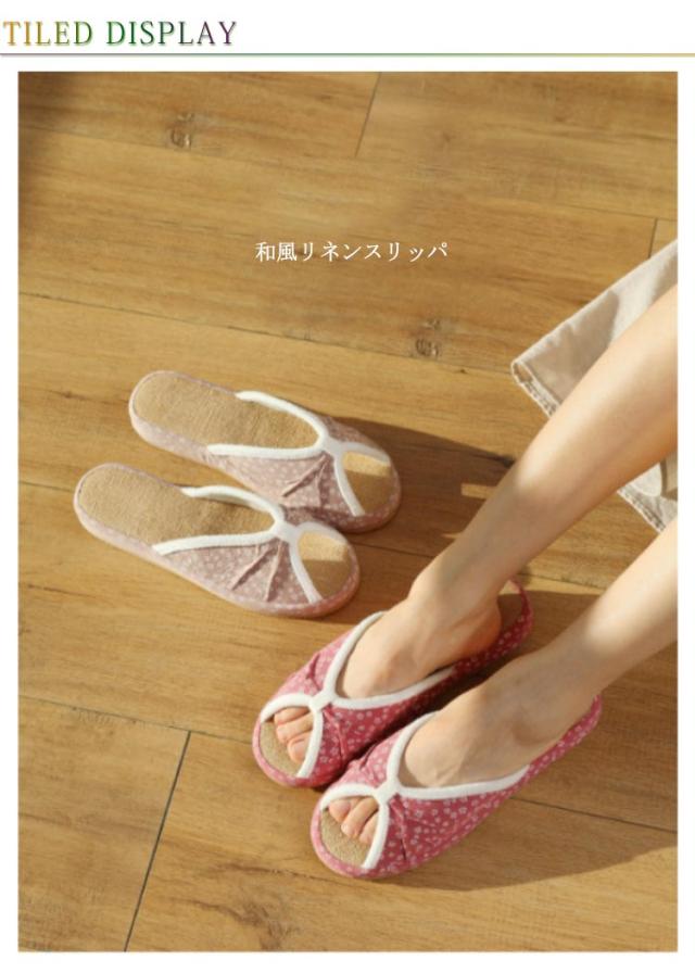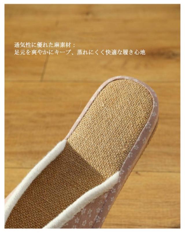 リネンスリッパ レディース 花柄 春夏スリッパ ルームシューズ 前あき 麻 リネン おしゃれ かわいい ルームスリッパ ルームサンダル 蒸れない 室内履き 業務用 来客用 新生活 ギフト プレゼント