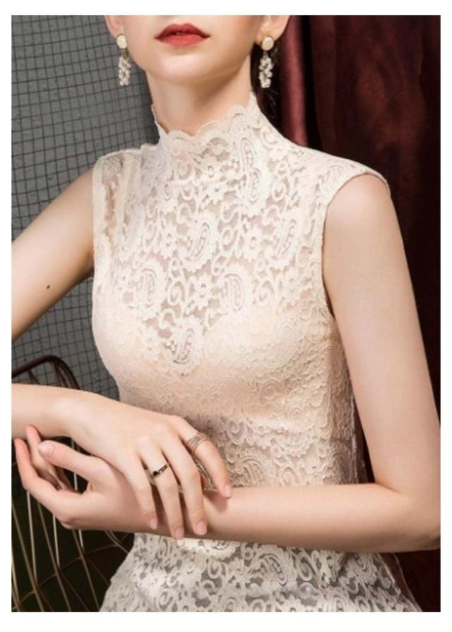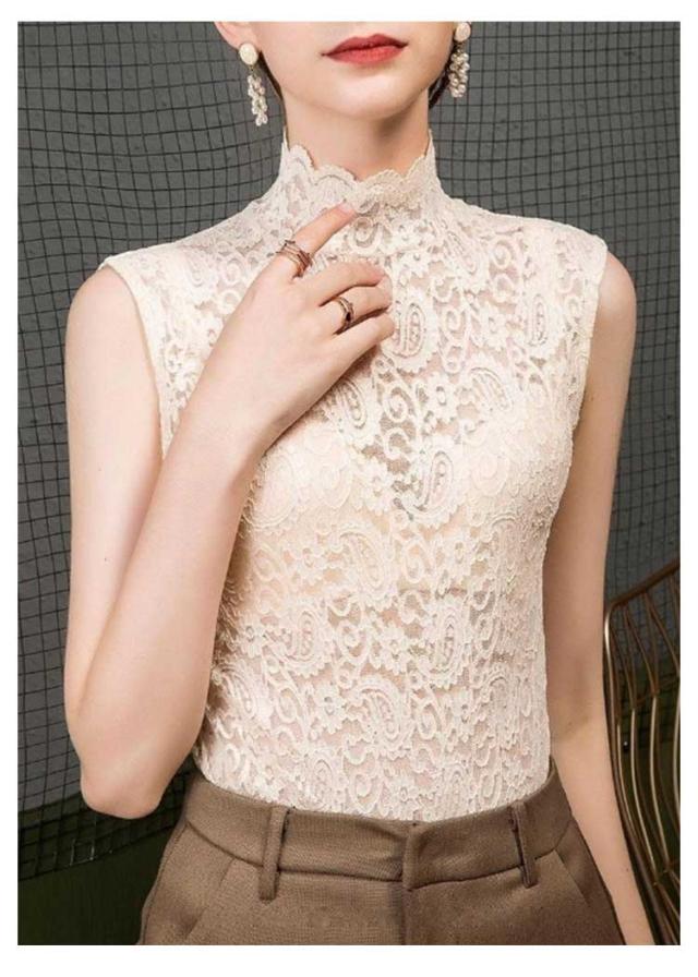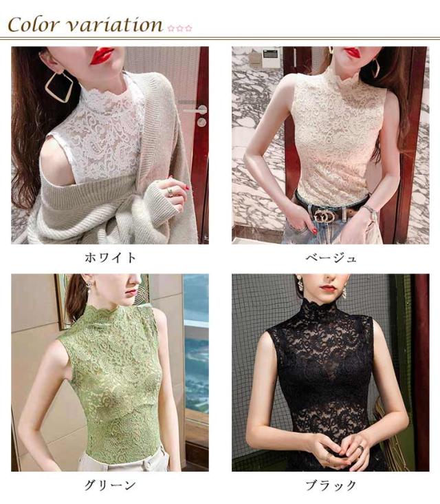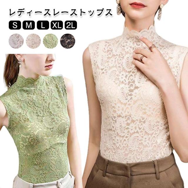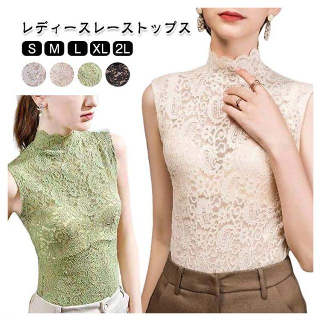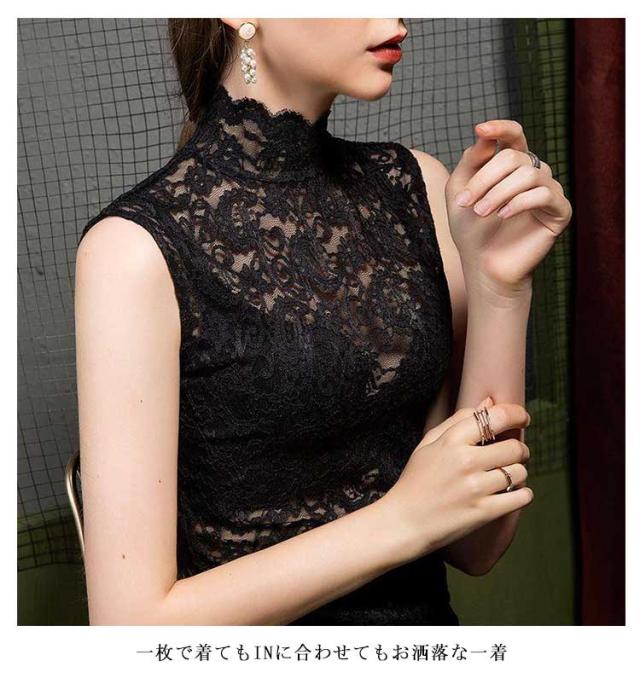 レース トップス レース ブラウス 総レース タンクトップ ノースリーブ 立ち襟 シースルー トップス ハイネック 花柄 レディース 韓国 ファッション 透け感 伸縮性あり 着やすい 柔らかい 重ね着 きれい 優しい