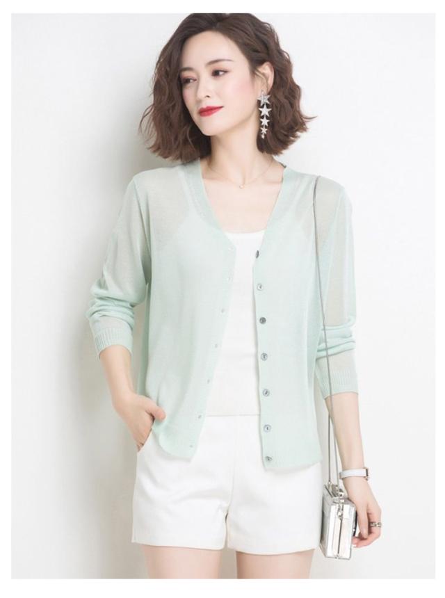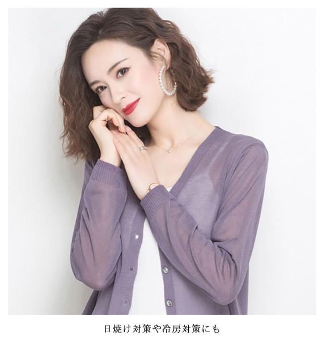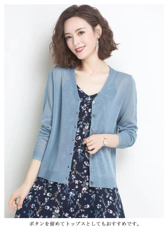 シアーニットカーディガン 夏服 無地 シアー サマーニット トップス カーディガン シアーカーディガン ボタン シアーニット シアートップス 長袖 オフィスカジュアル 通勤