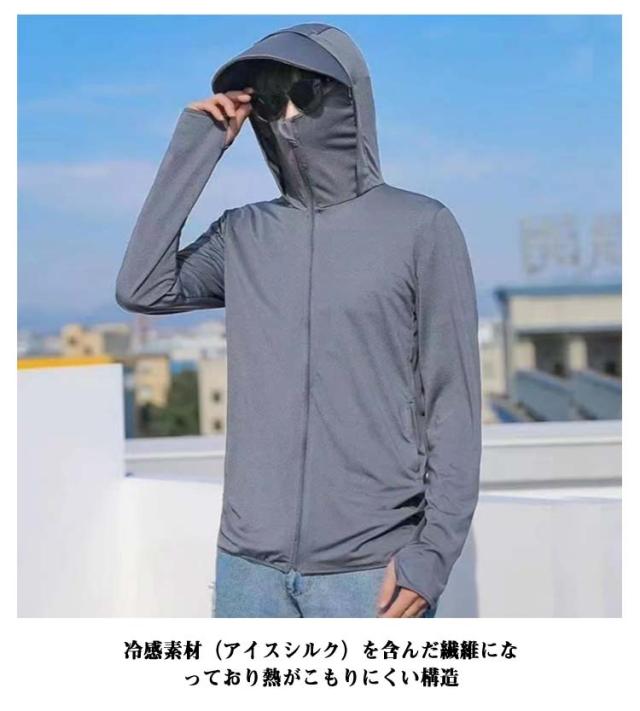 UVカット パーカー UVカット 冷感 メンズ ワークマン uvカットパーカー フード付き マスク付き レディース パーカー 男女兼用 紫外線対策 日焼け 春 夏 公園 海 暑さ対策 BBQ 伸縮性 通気性 速乾性 無地 夏服