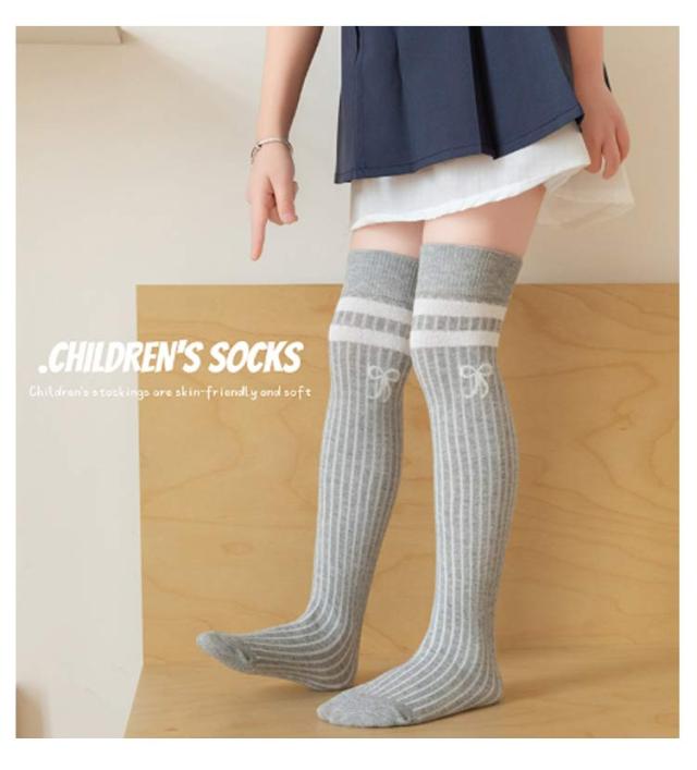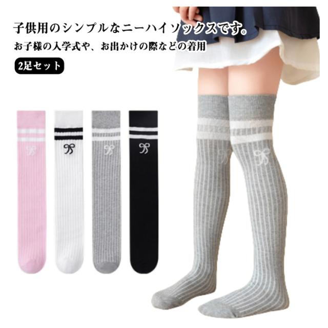 2足セット ニーハイソックス キッズ ハイソックス オーバーニーソックス リボン刺繍 子供 靴下 ソックス キッズ 靴下 ブラック グレー ホワイト ピンク 黒 白 発表会 入学式 卒業式 通学 クリスマス 春夏 秋 ひざ上 膝上 子供用 定番 女の子 レッグウェア くつ下