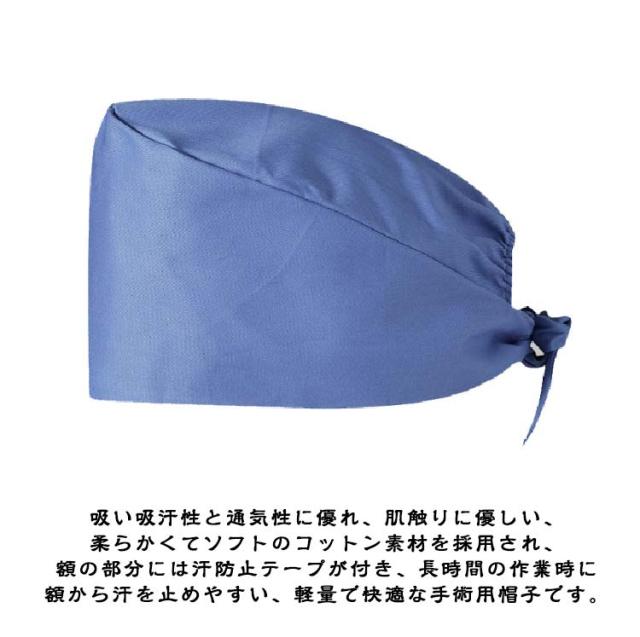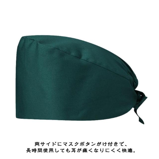 | 全9色!マスクがける手術帽! 埃よけ、髪の毛をすっきりと束ねる衛生キャップ。 吸い吸汗性と通気性に優れ、肌触りに優しい、柔らかくてソフトのコットン素材を採用され、額の部分には汗防止テープが付き、長時間の作業時に額から汗を止めやすい、軽量で快適な手術用帽子です。 帽子の後ろには伸縮性によいゴムバンドと紐結びに設計られており、頭のサイズに合わせて調整でき、長髪の方でもフィットしやすく、使用しやすいアイテムです。 両サイドにマスクボタンがけ付きで、長時間使用しても耳が痛くなりにくく快適。 病院、クリニック、作業、調理場、給食、手術、工場見学、食品の加工、美容院、ゴミ清掃、キッチン、レストランなどに! | |