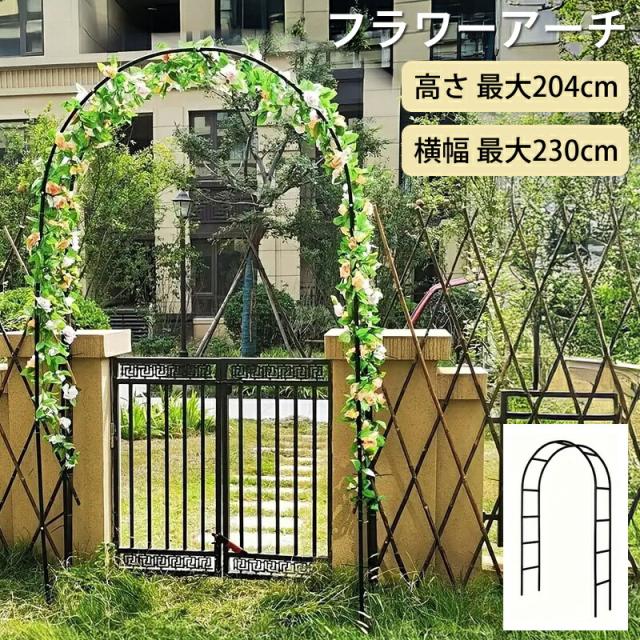 大型 ガーデン アーチ ローズ フラワー アイアン 金属製 スチール製 ブラック シンプル 組立簡単 高さ調整可 バラ クレマチス 野菜 登山植物 ガーデニング 装飾 イベント イルミネーション バルーンアート 屋外 庭 園芸 アクセサリー 頑丈 耐久性 園 送料無料