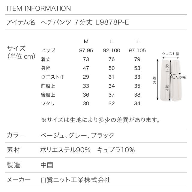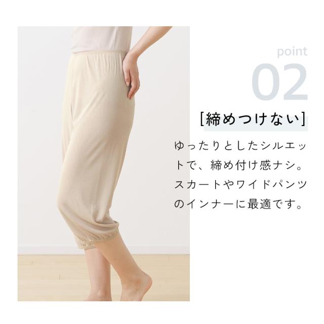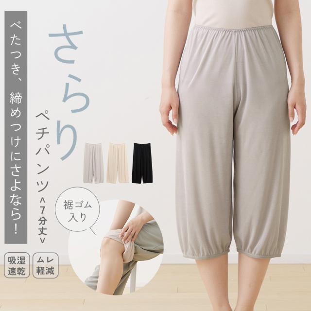 ムレ軽減 ペチパンツ 7分丈 レディース 春夏 ボトムス ペチコート 速乾 さらさら ハーフパンツ インナーパンツ スパッツ 汗染み 防止 汗 対策 透け防止 またずれ防止 冷え対策 女性 肌着 婦人 下着 L9928P-E