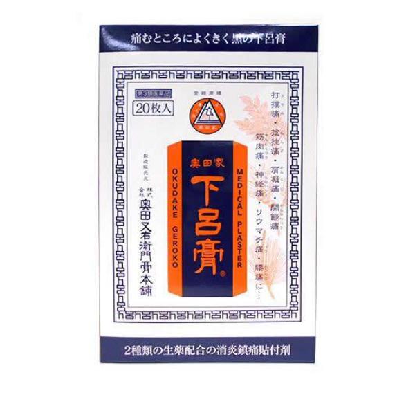 【第3類医薬品】奥田家 下呂膏 20枚 黒の下呂膏 湿布薬 痛み止め 貼り薬 市販 打撲 捻挫 肩こり 関節痛 筋肉痛 神経痛 腰痛