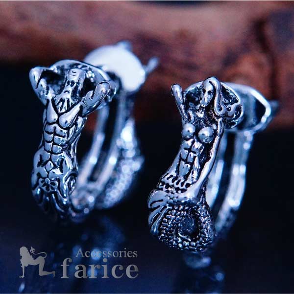・シックスパックに割れた腹筋 筋肉やグラマラスな上半身がセクシーかつ健康的で、海を自由に泳ぐ強靭でミステリアスな下半身の尾びれ部分とマッチしています。細かい部分までリアルに表現した凝ったデザインのピアスをお探しの方必見です