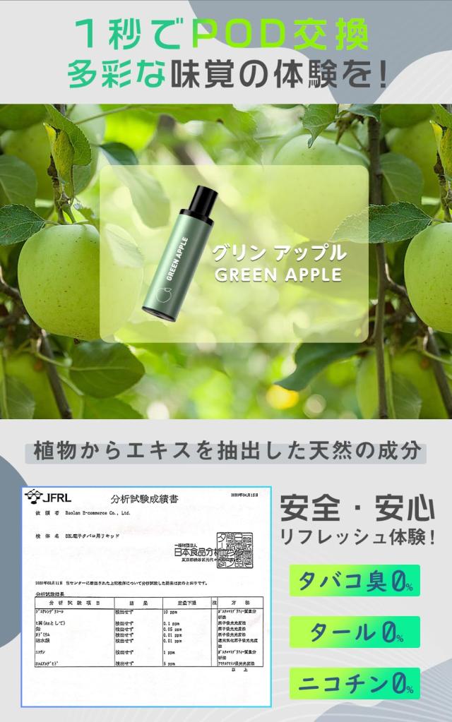 DBL BOX 電子タバコ べイプ ポッドカートリッジ 交換用ポッド 10個付き 50,000回吸引可能 爆煙 使い捨てカートリッジ リキッド充填不要 持ち運び シーシャvape 水蒸気タバコ ニコチンなし タールなし 禁煙 グリンアップル