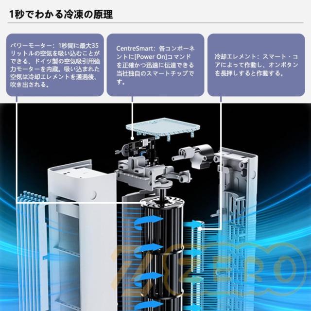 この卓上冷風扇は送風、冷却の2つの機能を兼ね備えており、扇風機よりも涼しく潤いのある風をお届けします!室温より最大で-10.8℃の冷たい風を実現し、体を優しく冷やします。エアコンの風が苦手な方や、乾燥が気になる方におすすめです。