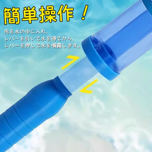 【使い勝手抜群】全長約45cmの大きさで、持ちやすく使い勝手が抜群です。先を水の中に入れ、レバーを引いて水を得てから、レバーを押して水を噴霧します。 子供も大人も手に馴染みやすく、快適に水遊びを楽しむことができます。