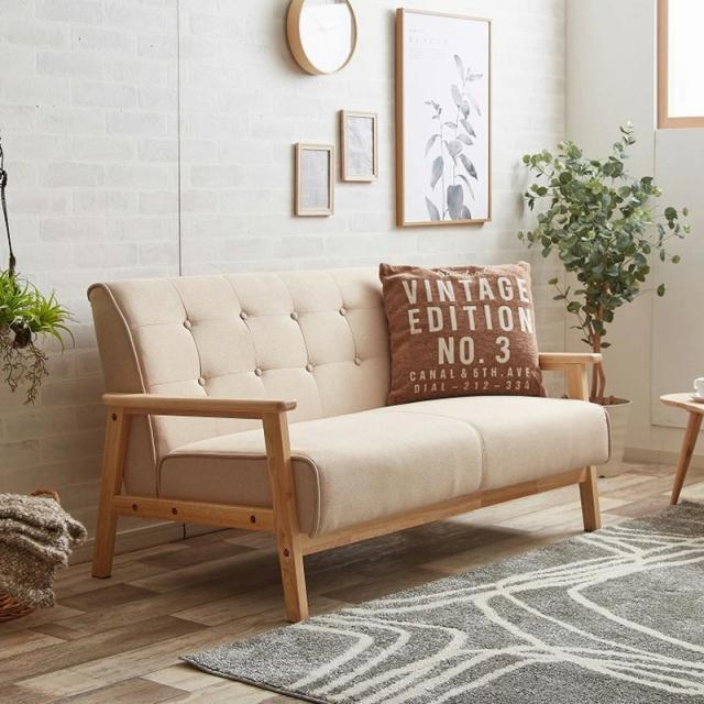 ソファ 2人掛け 天然木製フレーム 二人掛け 布張り PVCレザー張り 2P レトロモダン 北欧インテリア 幅127cm RENT2