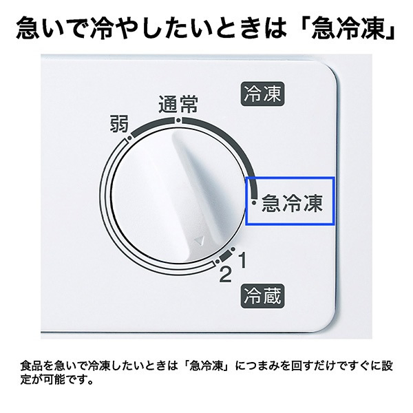 食品を急いで冷凍したいときは「急冷凍」につまみを回すだけですぐに設定が可能です。