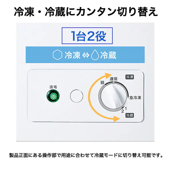 製品正面にある操作部で用途に合わせて冷蔵モードに切り替え可能です。
