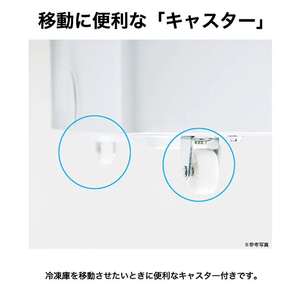 冷凍庫を移動させたいときに便利なキャスター付きです。