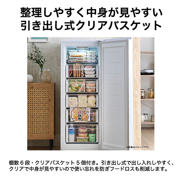 庫内は扉を開けるとストック内容がひと目でわかるのも前開き式のメリットです。
