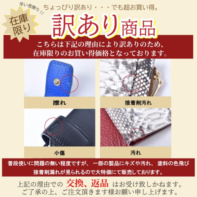 | その他詳細 | 天然皮革に関してはワシントン条約を元に適正に輸入された商品を販売しています。 撮影に使用された商品が届く場合がございますが、当店の運営に基づき、出荷時に問題の無いと判断し販売しております。 |