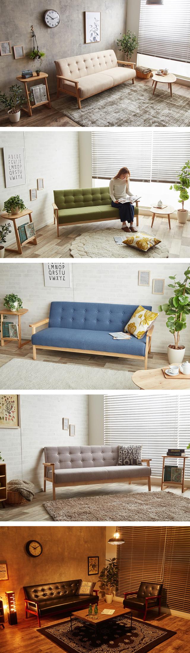 ソファ 3人掛け 天然木製フレーム 三人掛け 布張り PVCレザー張り 3P レトロモダン 北欧インテリア 幅127cm RENT3