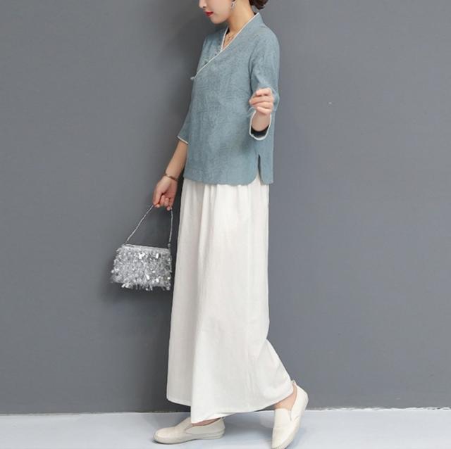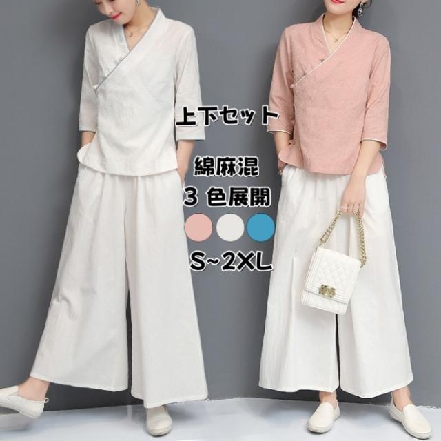 セットアップ レディース 半袖 2点セット 上下セット トップス tシャツ ロングパンツ ゆったり 体型カバー 着痩せ 40代 50代 綿麻 夏新作