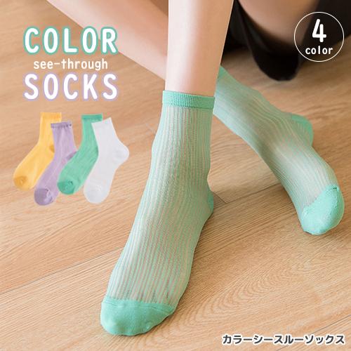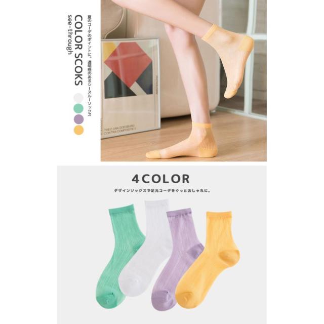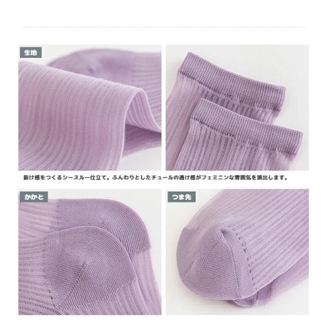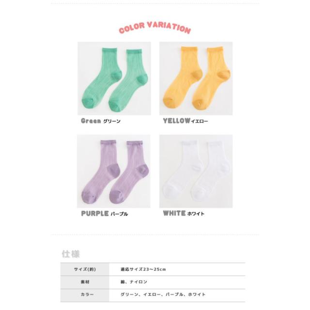 シースルーソックス 23-25cm カラー ストライプ ク クルーソックス ショートソックス シースルー ソックス 靴下 レディース 涼しい 小物 雑貨 女性らしい 外しアイテム デザイン パンプス スニーカー カラフル 5カラー ブラック ホワイト イエロー グリーン パープル レディース ソックス 女性 婦人 ソックス くつした おしゃれヘビロテソックス 春夏ソックス