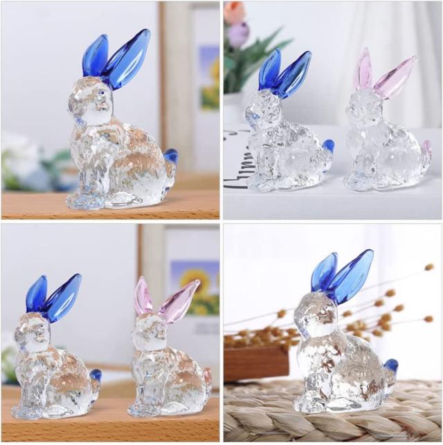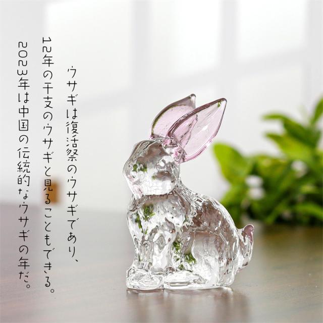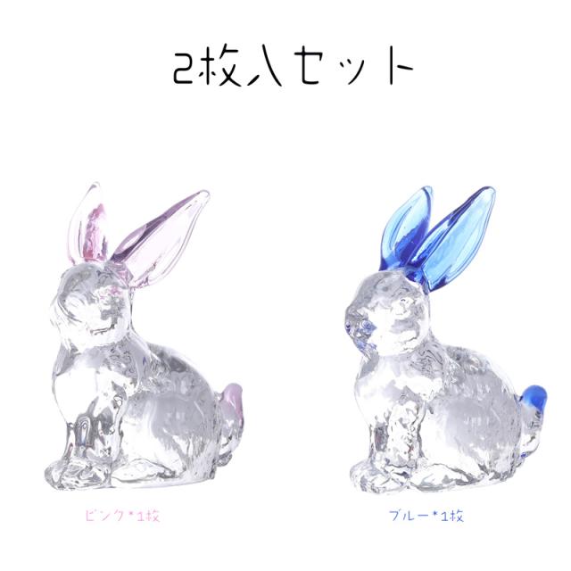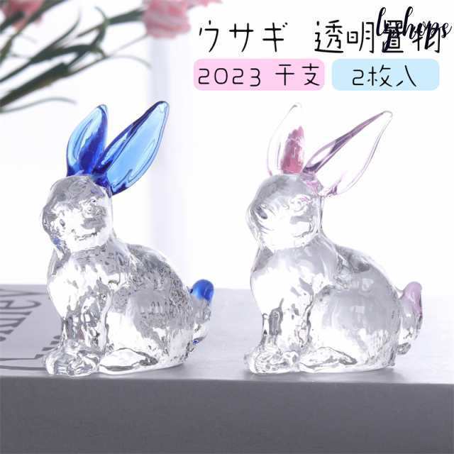 ウサギ 置物 うさぎ オブジェ ガラス ホーム ガラス細工ウサギ 彫像 透明 装飾 2023 干支 お歳暮 お年賀 ギフト ミニチュア 2枚入