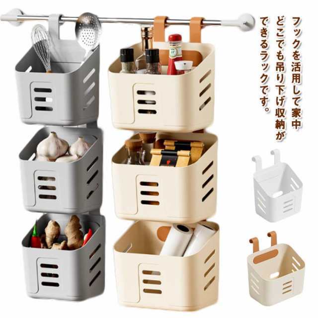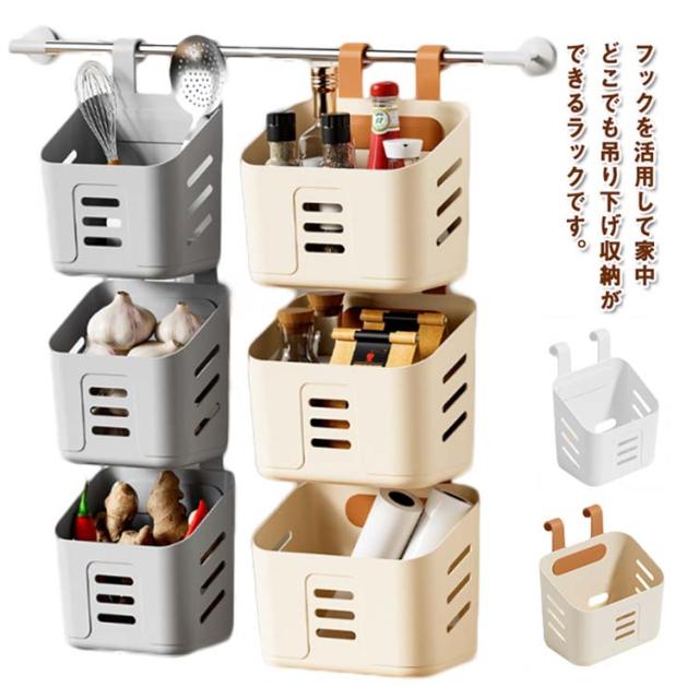 | フックを活用して家中どこでも吊り下げ収納ができるラックです。 引っ掛けるだけで縦に連結できるので省スペースで収納を増やせます。 隙間やデッドスペースを有効活用し、狭い部屋でも快適にお過ごしいただけます。 バスケットはどれも深めの設計になっており、小物だけでなくシャンプーボトルや調味料ボトルを収納するのも◎ 全面に通気穴があり水はけに優れているため、洗面所・バスルーム・キッチンなどの水回りでも気兼ねなくお使いいただけます。 手すりやタオル掛けなど引っ掛ける場所さえあれば、どこでもご使用いただける便利なアイテムです。 | |