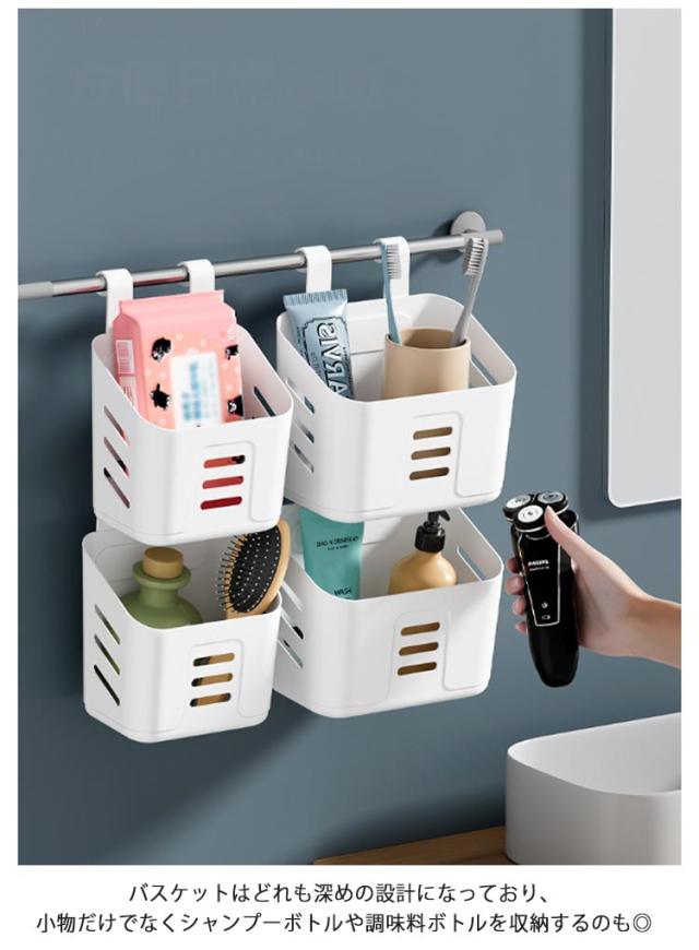 引っ掛け バス用品 吊り下げラック 連結 バス用品 バスルーム バスラック かご 小物入れ キッチン 収納ラック 吊り下げラック 収納バスケット 収納バスケット インテリア バスケット 玄関 部屋 オフィス 車用 雑貨収納 水切り 収納ケース ホワイト グレー