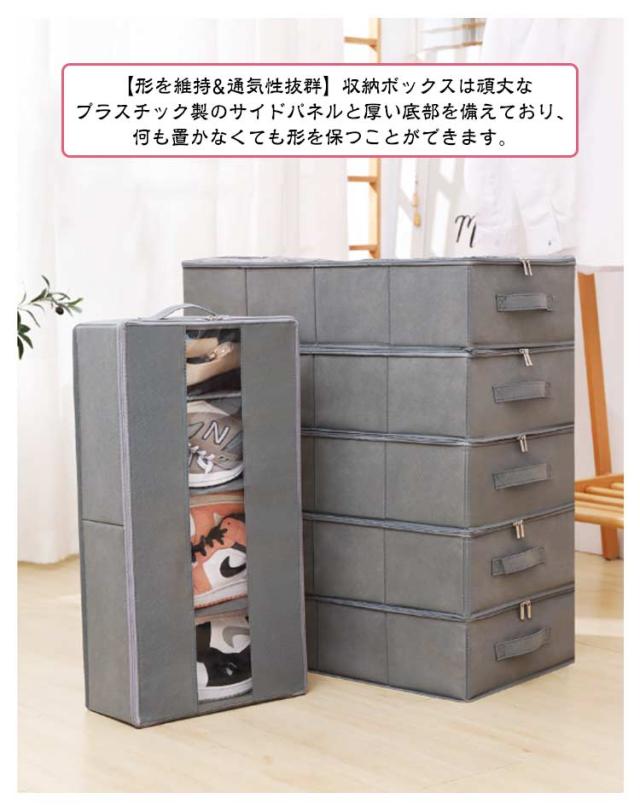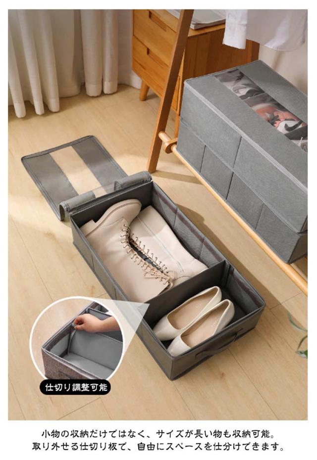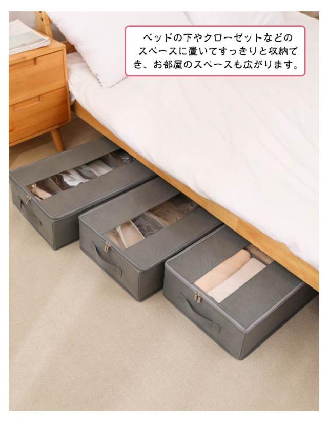 | 3個セット【容量が大きく用途も多様】ベッド下収納ケースにはさまざまなアイテムを入れることができます。ベッドカバー、毛布、布団、枕、衣類、靴、書籍、玩具、アクセサリー、ジュエリー、ベビー用品など幅広くご使用できます。理想的なベッド下収納ケースです。 【形を維持&通気性抜群】収納ボックスは頑丈なプラスチック製のサイドパネルと厚い底部を備えており、何も置かなくても形を保つことができます。ベッドの下やクローゼットなどのスペースに置いてすっきりと収納でき、お部屋のスペースも広がります。 【折り畳み・水洗い可能】折りたたみ式で使わないときはスペースを節約できます。洗うことができお手入れもとても簡単です。 【仕切り調整可能】小物の収納だけではなく、サイズが長い物も収納可能。取り外せる仕切り板で、自由にスペースを仕分けできます。 | |