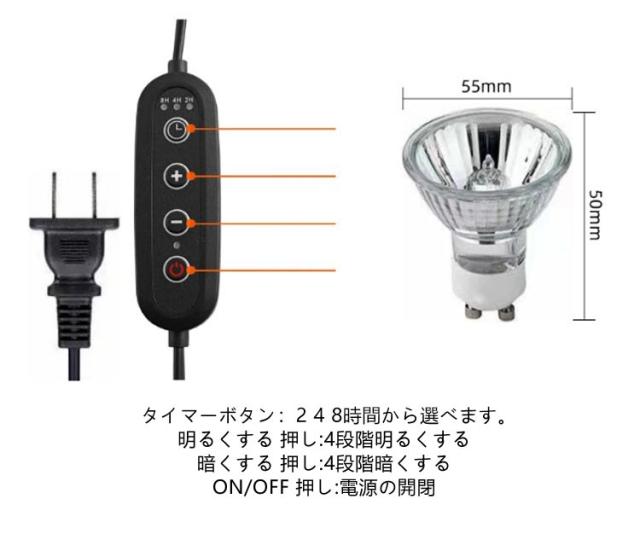 | このキャンドルウォーマーは火を使わずに、黒煙も発生してなくて、玄関やキッチン、寝室などで安心して香りが楽しめます。タイマー機能付き 調光 GU 10電球を使ってライト式の優雅な外観を維持しながら、無火無煙で、ワックスを溶かしてアロマを放出する効果を実現します。 小さなお子様がいらっしゃるご家庭では、照明の熱は気を付けなければなりませんが、実際の火を使うよりも安心(安全)にリラックス効果を得ることが出来ます。そして心地よい香りで快眠やリラックス効果もバツグンです。 プレゼントにオススメ雰囲気のあるキャンドルウォーマーランプ、誕生日プレゼントや、クリスマスプレゼントにも大変人気があります。入学祝い、出産祝い、奥様やお子様・ご両親、可愛いものが好きな友人知人へのプレゼントにもお勧めです。 使用方法:アロマキャンドルを取ってキャンドルウォーマーランプの土台に置き、ランプを点灯します。点灯後3?4分で表面が溶けて、すばやく香りが広がって、広い空間でもお気に入りの香りをお楽しみいただけます。 タイマーボタン:2 4 8時間から選べます。 明るくする 押し:4段階明るくする 暗くする 押し:4段階暗くする ON/OFF 押し:電源の開閉 | |