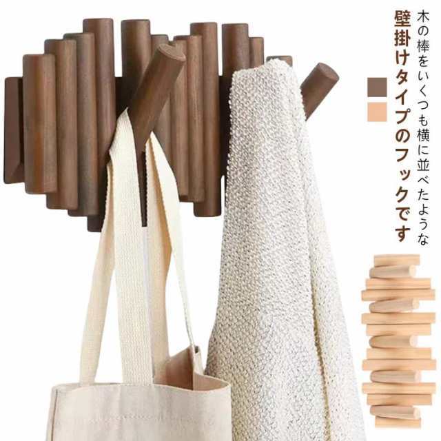 | 木の棒をいくつも横に並べたような壁掛けタイプのフックです。 天然木が使用されているため、使うほどに味が出る風合いの変化が特徴です。 フック箇所は全部で5つ。バランスのいい間隔で洋服やバッグなど様々なものをかけることができます。 かけるものがなくてもフックをたたんでいれば、インテリアとしてお部屋のアクセントになります。 コンパクトなので取り付け場所の選択肢が広がります。玄関や脱衣所などの狭いスペースでも大活躍! ご自宅ではもちろん、レストランやカフェなど飲食店や美容院、病院などの業務用にも。 | |
