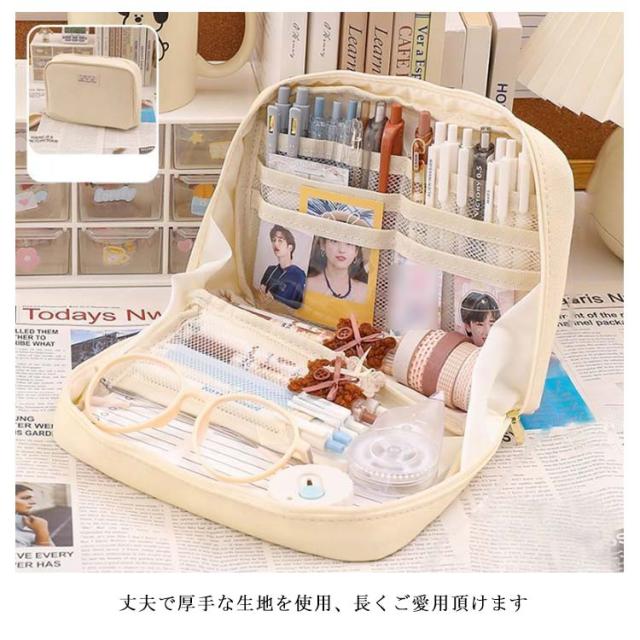 仕切り ペンケース 仕切り 大容量 筆箱 韓国 ペン入れ 収納 文房具 かわいい ツールペンケース コスメポーチ ファスナー 中学生 コスメ 収納ポーチ 90°開き 帆布 ふでばこ 女子 高校生 ふで箱 きれいめ おしゃれ 社会人 卒業 入学 誕生日 ギフト 小物入れ