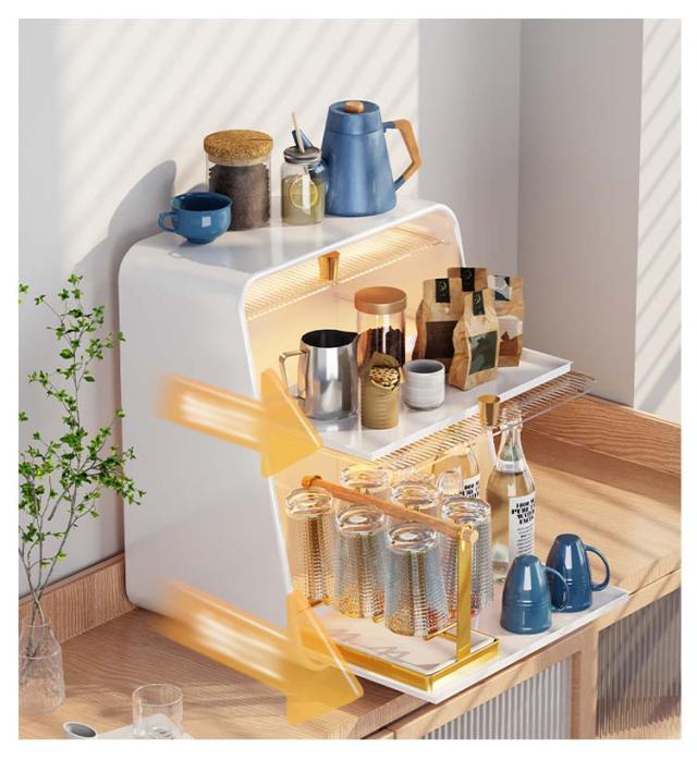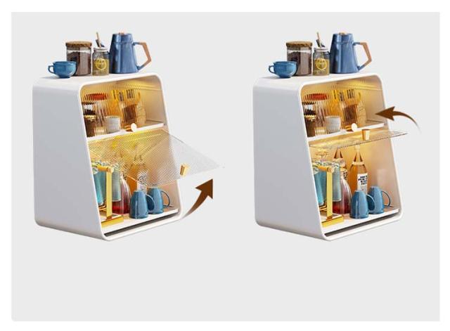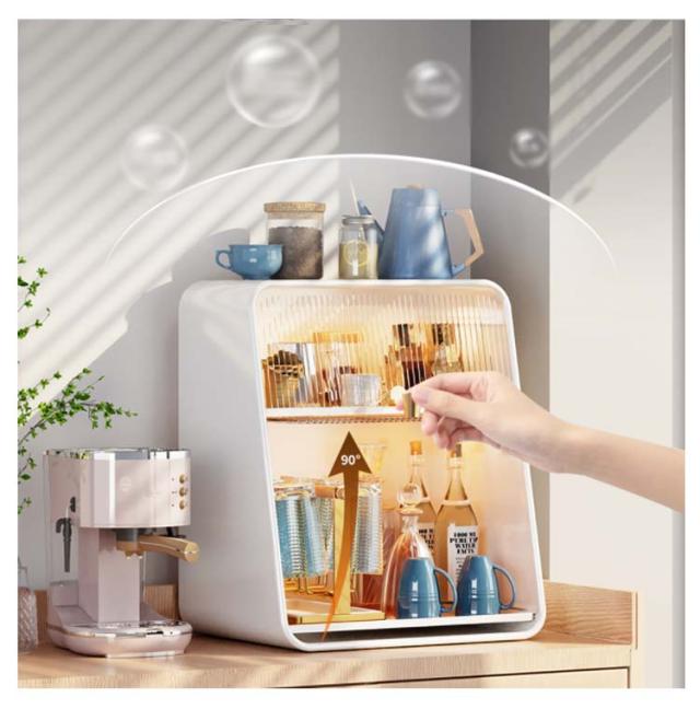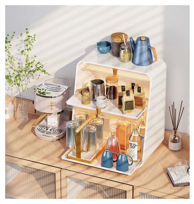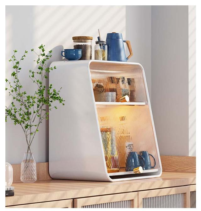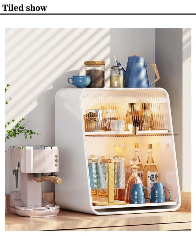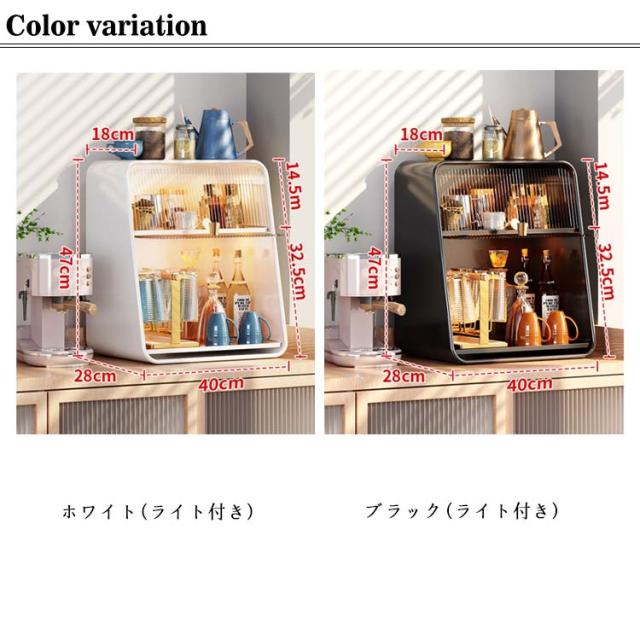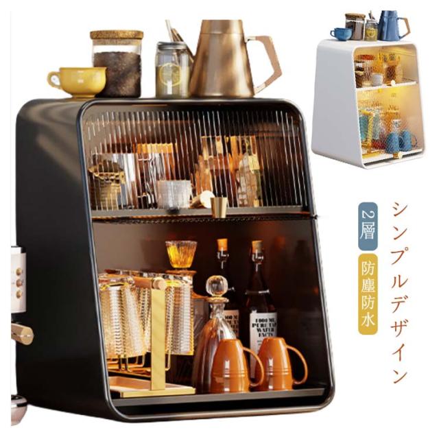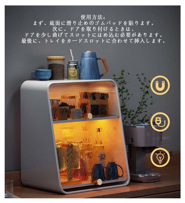 ミニ食器棚 食器棚 上置き ミニカップボックス 2段 収納ボックス 収納ケース 箱収納 収納 ボックス キッチンラック 卓上食器棚 調味料棚 卓上収納 コンパクト スリム キッチン 食器 収納棚 台所収納 キッチン収納 小型 一人暮らし ライト付き 水受けトレー