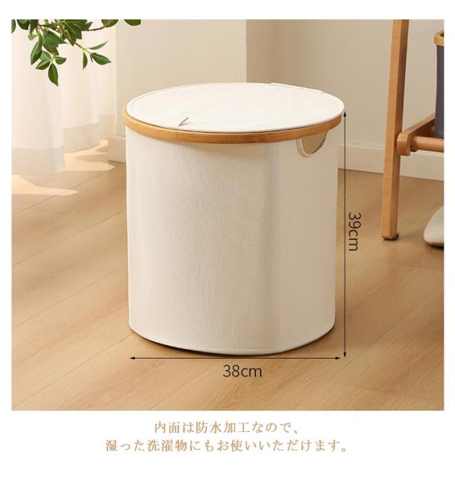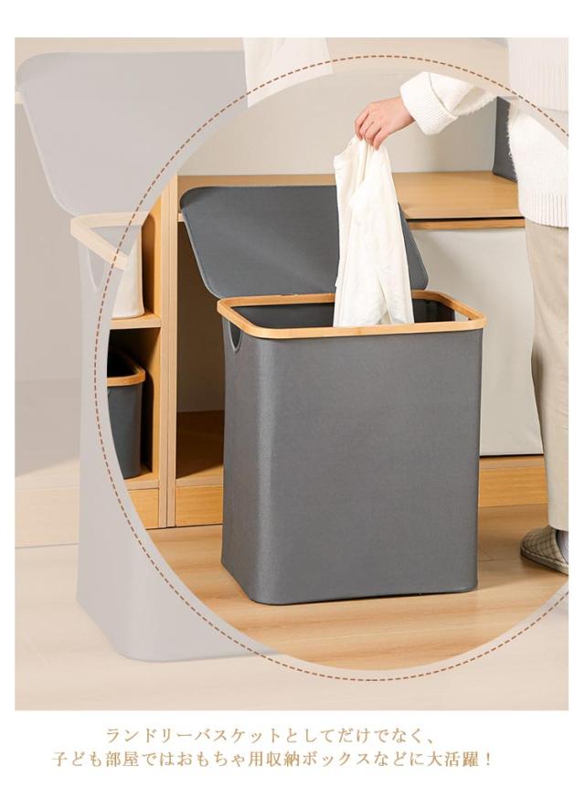 | ・生活感を隠してしっかり収納! ・竹製のフレームがお洒落な布製バスケットです。 ・洗濯物や小物がたっぷり入る大容量!ランドリースペースにすっきりおける「フタ付き収納ボックス」です。 ・内面は防水加工なので、湿った洗濯物にもお使いいただけます。 ・ランドリーバスケットとしてだけでなく、子ども部屋ではおもちゃ用収納ボックスなどに大活躍! ・持ち手も付いているので、洗濯後の衣類を2階のバルコニーに運んだり、コインランドリーやクリーニング店への移動も楽ちん。 ・使用しないときにはコンパクトに折りたたんで収納できるのも嬉しいポイント! | |