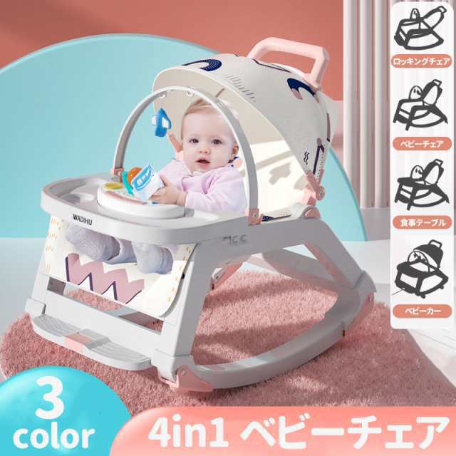 4in1 ベビーチェア リクライニング バウンサー ロッキングチェア ベビーカー ハイチェア ローチェア テーブルチェア カート 食事トレイ タイヤ付き 角度調節 洗える ベビー用品 多機能 新生児 ベビー キッズ 赤ちゃん 椅子 イス 離乳食 出産祝い 1歳 2歳 3歳