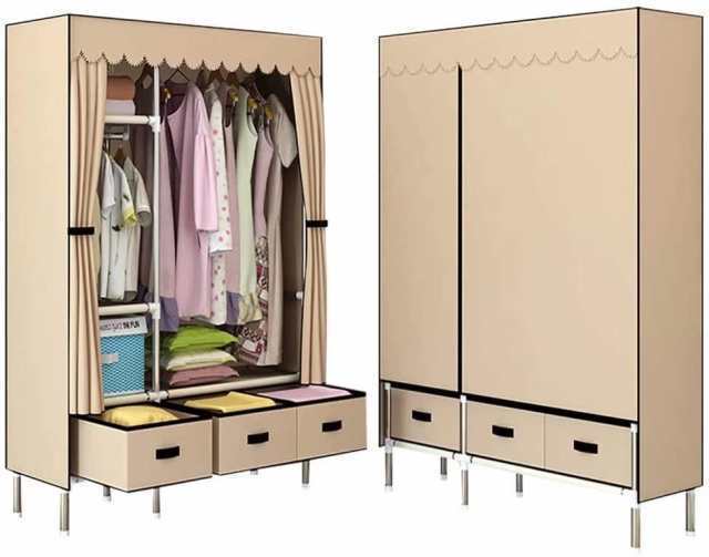 ワードローブカバー付き ワードローブクローゼット 洋服ダンス メタルラック ハンガーラック大容量 シンプルな布製ワードローブ 引き出し