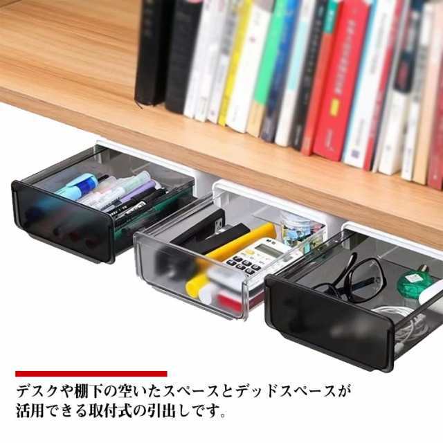 引き出し 卓下 机下収納 後付け 引き出し デスク下引き出し 机下収納ケース 大容量 透明 収納トレー 隠し式 デスク整理 取り付け引き出し 小物整理 オフィス