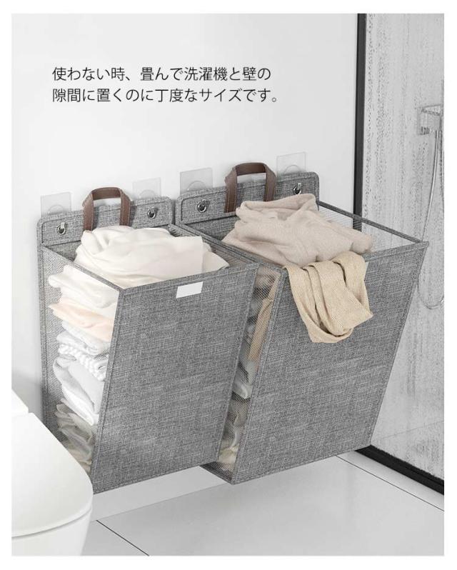 | 狭いスペースでスッキリ収納、洗濯カゴ・脱衣カゴ・雑貨の収納などマルチに使えます。 汚れた服を保管し、他のおもちゃ、紙パック、新聞ストッカーなどの整理にも使用できます。 付属フックを使って、壁や洗濯機に掛けられます。 使わない時、畳んで洗濯機と壁の隙間に置くのに丁度なサイズです。 軽量で持ち手も付いてるので、あちこちへ持ち運び便利です。 寝室、キッチン、バスルーム、ランドリールーム、収納ルームなど広幅活躍! | |