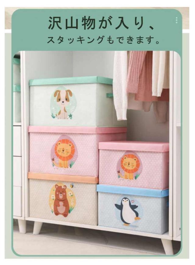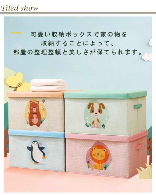 おもちゃ 収納 キッズ 収納ボックス ふた付き 折りたたみ かわいい アニマル柄 くま いぬ ペンギン ライオン 収納ケース コンテナ かご 衣類 収納 子供 キッズ ベビー 親子 整理整頓 積み重ね ふた付き おもちゃ 収納BOX 頑丈