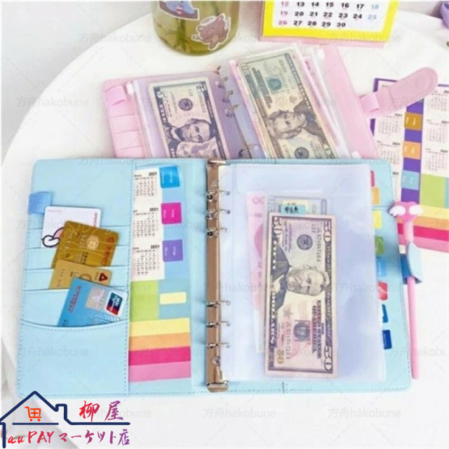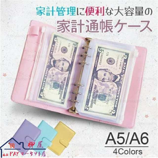 家計管理ケース 現金封筒付き ハウスキーピングブック マルチ収納 システム手帳 家計簿 袋分け 通帳ケース クリアファイル クリアポケット