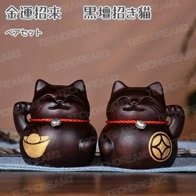 金運 招き猫 置物 おしゃれ 木製 木彫り 置き物 インテリア縁起物 幸運 繁盛 贈り物 開運 商売繁盛 アイテム 黒壇 ペア セット ギフト プレゼント 開店祝い 新築祝い 新生活