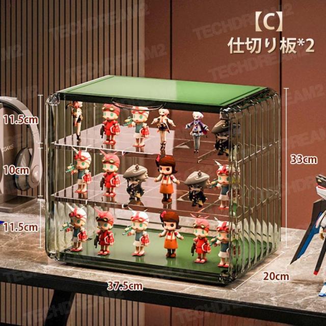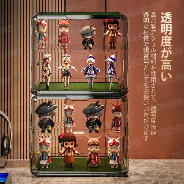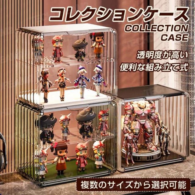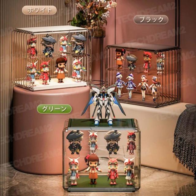 コレクションケース アクリル製 フィギュアケース 2段 ステージ ディスプレイケース 薄型 卓上 透明 防塵 コレクションケース棚 模型 展示用 透明扉